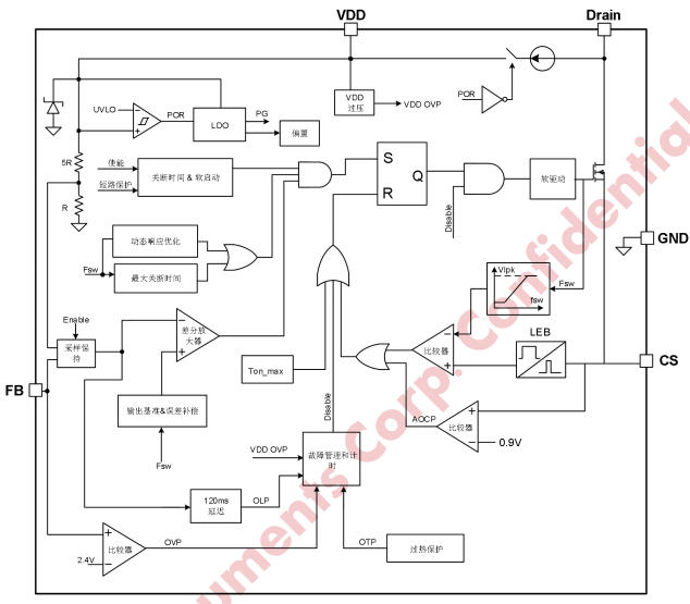 所有型號均內(nèi)置 500V 高壓 MOSFET、高壓啟動電路、多模式 PWM 控制器,支持 Buck 和 Buck-Boost 拓?fù)洌?strong>默認(rèn) 12V 輸出(FB 腳懸空),待機功耗 <50mW。
