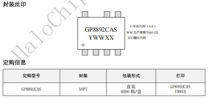 結語:GP8892CAS代表了小功率PSR電源的"極簡主義"趨勢——用更高的芯片集成度換取系統(tǒng)成本的全面優(yōu)化。對于5W級充電器、適配器及輔助電源市場,這款芯片提供了比傳統(tǒng)方案更優(yōu)的性價比選擇,是替代LP3773CH等需要外圍供電的PSR控制器的理想之選。