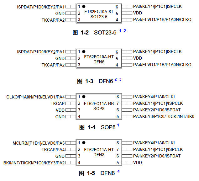 1-2個按鍵:選SOT23-6封裝(FT62FC10A-6T),體積最小